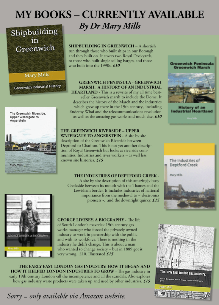 You can read more about the world class industrial heritage and archaeology of the area by exploring a series of books on industrial Greenwich by local historian Mary Mills. These publications cover shipbuilding, telecommunications, the gas industries, and many other industries.