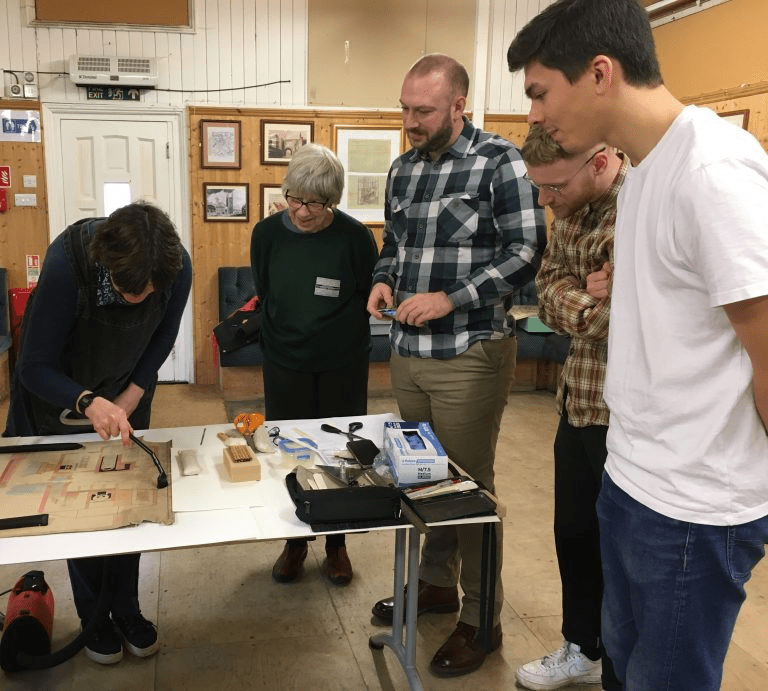Milsl Archive Trust volunteers learning new archibing skills. Image couresy fo the Mills Archive Trust.