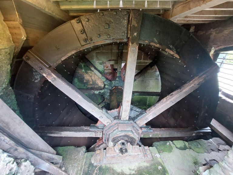 The waterwheel at Stretton Watermill, Cheshire. Image copyright Dr Michael Nevell.