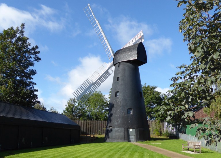 Brixton Windmill, a brick tower mill with boat-shaped wooden cap, was built in 1816. Three generations of the Ashby family produced stoneground flour until the business closed in 1934. It was wind-powered until 1862 when milling moved to a watermill at Mitcham. In 1902, milling resumed at Brixton using a hurst-framed modular mill with French burr stones driven first by steam, then by gas engine. It now has an electric motor and is still in use. The windmill was restored in 1964, but not to working order, using machinery from Hanson’s Mill, Burgh-le-Marsh, Lincolnshire, and new parts were also made. A further HLF-funded restoration was completed in 2011. Lambeth Council own the windmill and Friends of Windmill Gardens open it to the public one weekend a month from Easter to October alongside other events, activities and regular milling.